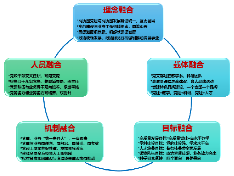 从理念、人员、机制、载体、目标五个维度入手,探索建立“深度融合、协同发展”工作机制,初步实现了党建与业务互融共促、双向奔赴的工作局面。在理念融合方面,强调政治统领发展,明确高质量党建与学院高质量发展的辩证统一关系,在业务工作中进一步加强党的领导,确保党的领导更加坚强有力;在人员融合方面,通过党政干部交叉任职、双向交流,党建队伍与业务骨干双向培养、多维考核,锻造一支政治素质过硬、工作经验丰富、业务能力突出的干部队伍;在机制融合方面,严格落实“第一责任人”职责和“一岗双责”责任,坚持党建与业务同谋划、同部署、同推进、同考核,发挥系统协同效应;在载体融合方面,将党支部建在教学系和科研团队,通过课程思政、育人品牌活动及“党建+教学、党建+科研、党建+人才”等模式,确保“两个作用”发挥更加充分。在目标融合方面,树立“学院高质量发展目标=高质量党建+高水平办学”理念,将党的建设贯穿于学科建设、人才培养、师资队伍、科学研究等中心工作,引领实现学院高质量发展目标。