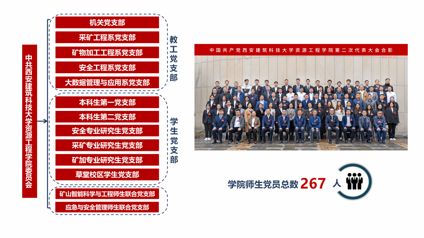 重大任务有突破。成功获批矿业工程一级学科博士学位授权点和资源与环境博士专业学位授权点,安全科学与工程学科连续两年入选“软科中国最好学科排名”,新增国家高层次人才特支计划科技创新领军人才1人,实现历史性突破。学院党委获评校级先进党委,在“分类指导 争先进位”三年行动计划中被评定为“一类”党组织,在党建工作述职评议考核中连续获评“好”等次,学院在2024年度绩效考核中名列全校第一,荣获优秀学院一等奖。