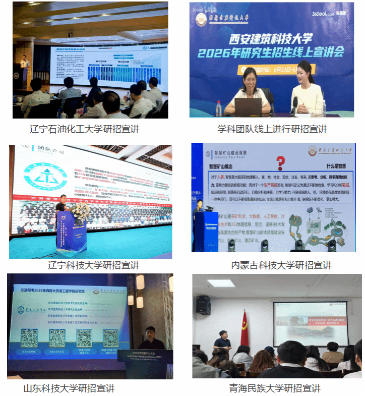 为吸引优秀生源,提升研究生招生质量,维多利亚vic003持续开展2026年研究生招生宣传工作。5月-9月期间,招生工作领导小组组长顾清华教授、副组长江松教授、各学科团队通过线上、线下的方式先后赴青海民族大学、山东科技大学、辽宁科技大学、西藏大学、内蒙古科技大学、辽宁石油化工大学6所高校开展研究生招生宣传。