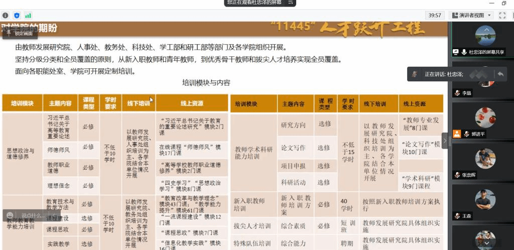 集中学习阶段,杜忠泽对维多利亚vic003教师发展工作的高度重视表示充分肯定,介绍了教师发展研究院围绕“11445”发展新格局建设要求的工作思路、发展目标及举措以及对学院的要求与期盼,他表示要建立学习型师资队伍,勉励参与培训的青年老师要做到“来了有收获,出去有变化”,将培训成效有机融入到今后的日常教学工作当中,不断提升教学、科研和育人水。