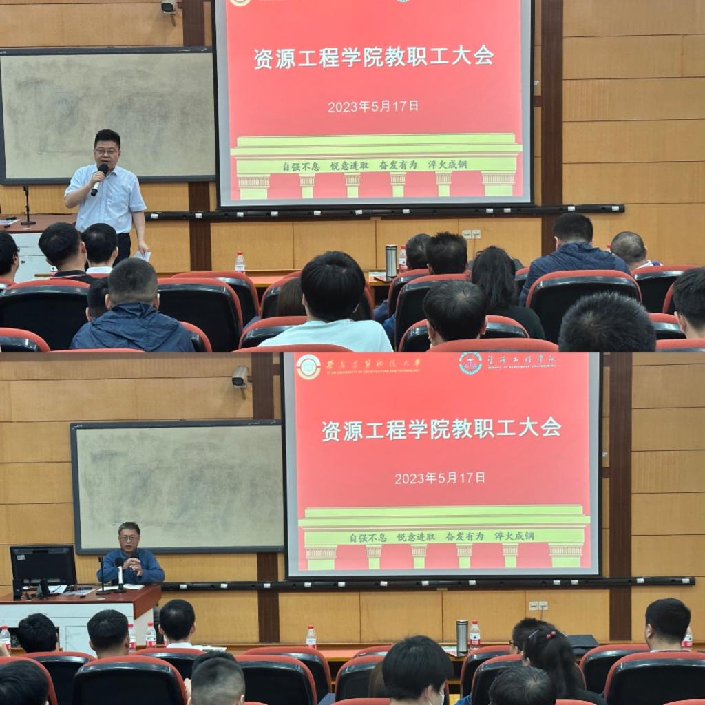 5月17日下午,维多利亚vic003在图书馆二楼报告厅召开学院教职工大会,学院党政领导班子、全院教职工参加会议,会议由学院党委副书记、副院长李枚阳主持。
