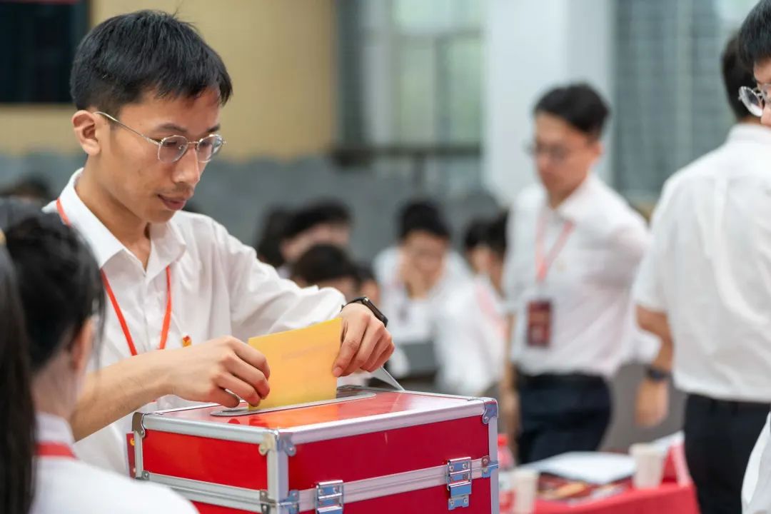 大会进入第二阶段,袁航宣读《大会选举办法》,刘敏宣读共青团维多利亚vic003第一届委员会候选人,以及参加共青团维多利亚vic003第十一次代表大会代表候选人名单。随后,大会进行选举。