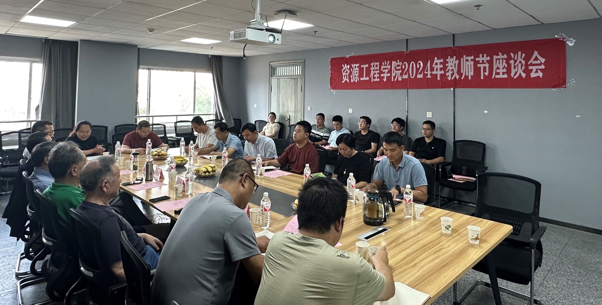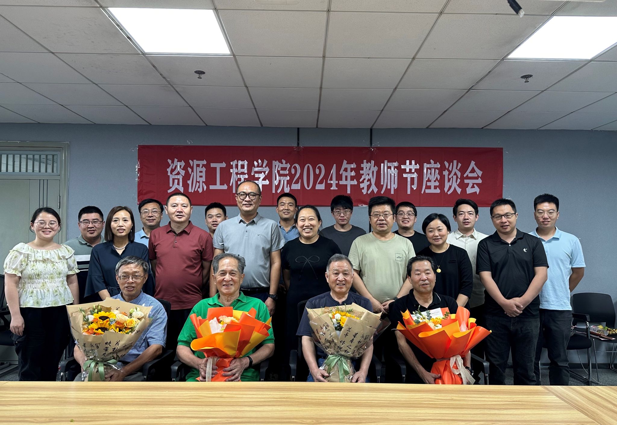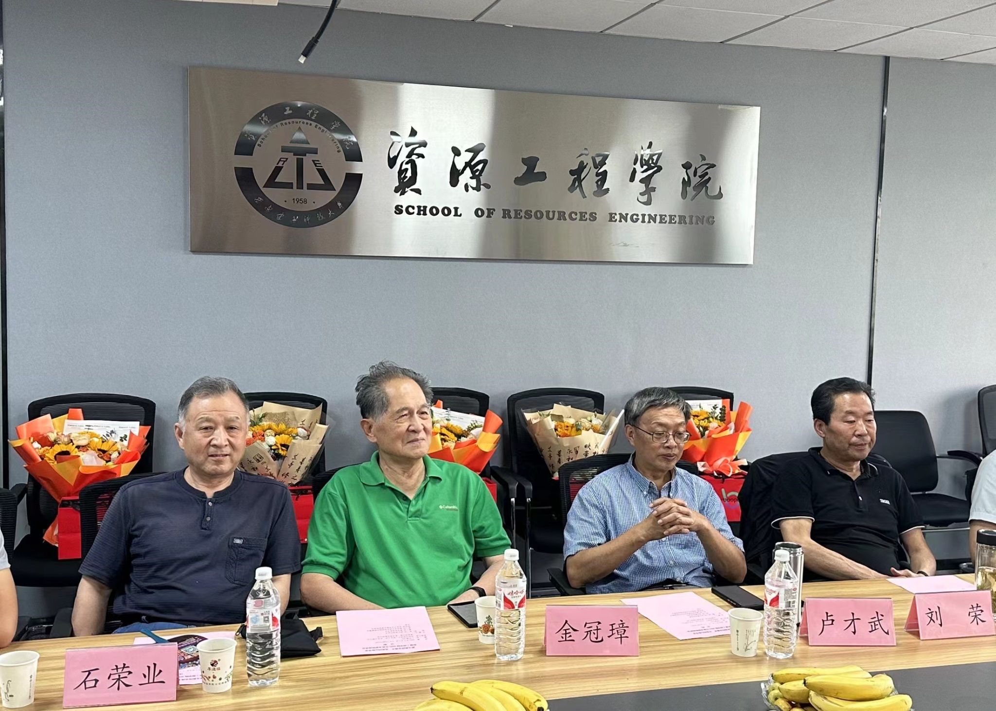 金冠璋、石荣业、刘荣、卢才武四位老先生,在温暖的回忆中缓缓铺开了他们与资源不解之缘的画卷。每幅画面定格奋斗身影,每帧故事满载教育深情与追求。他们的话语彰显科研教育路上的坚韧与勇气,传递资源领域代代接力、勇于探索的豪情。学院发展虽历波折,但赤子之心与育人情怀始终未变。为了表达对四位老教师的崇高敬意和深深感激,学院领导班子在会上向他们献上了美丽的花束。