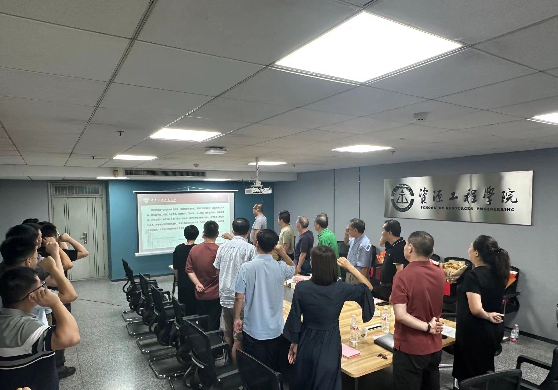 青年教师受老先生奋斗历程鼓舞,视其为宝贵财富与前行灯塔。同时,青年教师纷纷表示将会以更饱满热情投入教学科研,追求学术卓越,做学生良师益友,传承资源精神与情怀。会上,青年教师代表杨超宣读了《维多利亚vic003教师师德师风承诺书》。这份承诺书不仅是对个人职业操守的庄严宣誓,更是全体资源教师共同的心声与责任。随后,学院党委书记张佩带领大家举起象征责任的右拳庄严宣誓,象征着对教育事业深沉的责任与承诺,共同宣读了《师德师风宣誓词》。
