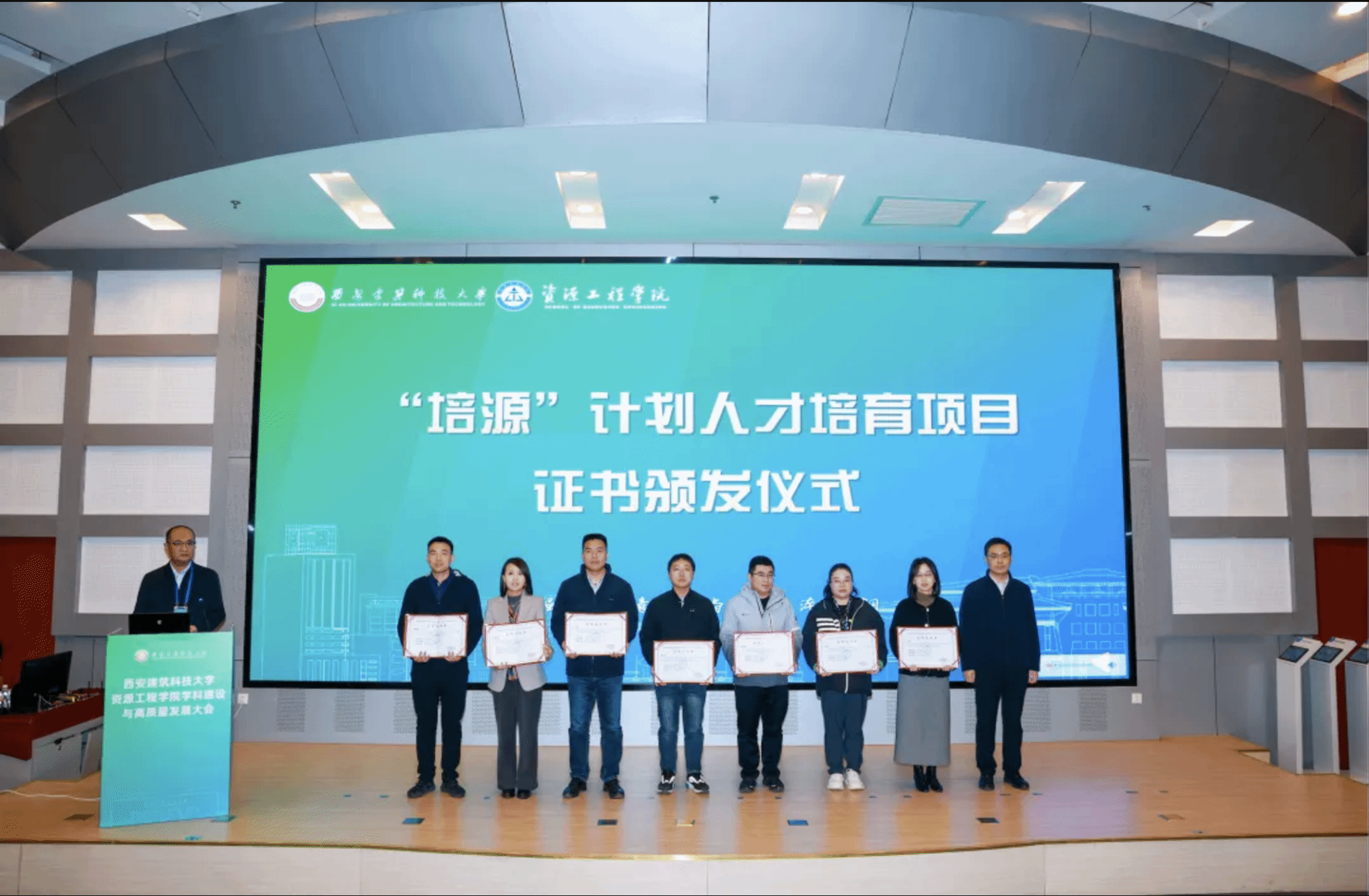 维多利亚vic003党委副书记、副院长李枚阳宣读学院“薪源”社会奖学金颁发文件。“薪源”社会奖学金由高兵教育基金、闫安柱教育基金、李林瑜教育基金与西安优迈智慧矿山科技有限公司资助,各基金及公司代表为获奖学生颁发荣誉证书。